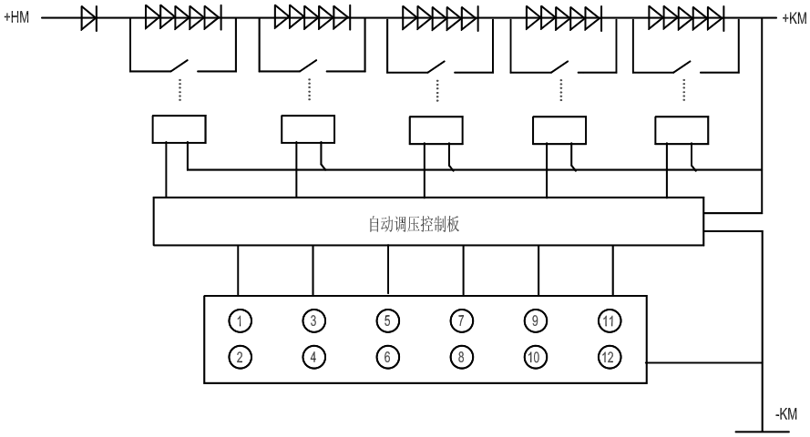 調節控制母線電壓,以向負載提供合適的直流電壓。通常采用降壓硅鏈串接于合閘母線和控制母線之間進行調壓,允許范圍2.5%Ue。可自動或手動調節。
