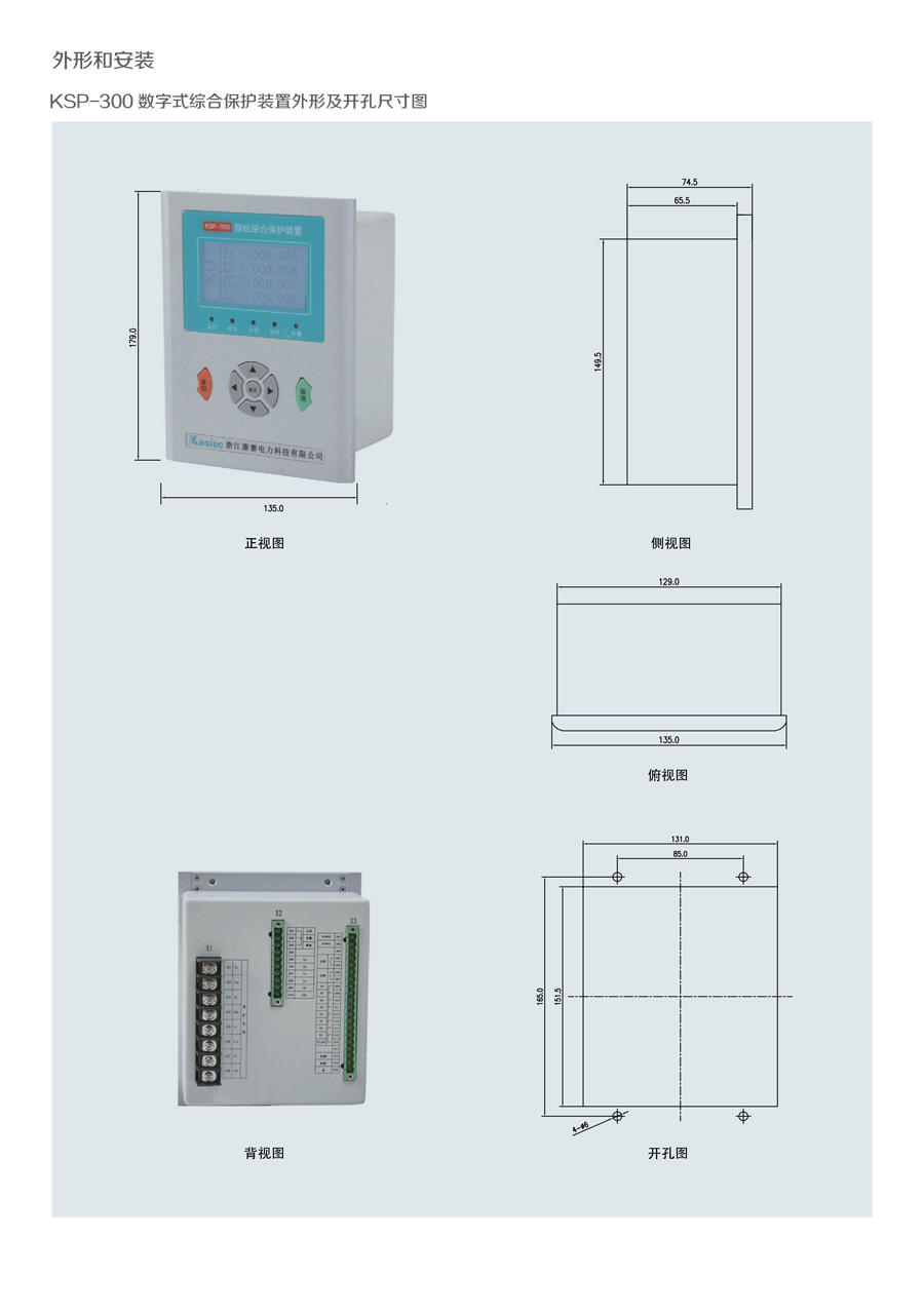 KSP-300 數(shù)字式綜合保護裝置是我公司為適應(yīng)我國電氣成套事業(yè) 發(fā) 展的需要,積累多年電力自動化產(chǎn)品開發(fā)經(jīng)驗,運用新技術(shù)、新工 藝 而推出的一款經(jīng)濟型綜合保護裝置。裝置結(jié)構(gòu)設(shè)計緊湊、體積小 巧,交 直流電源通用,可滿足 10KV 及以下電壓等級進出線、廠用 變等保護測 控功能。